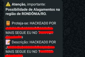 De acordo com o órgão, as credenciais de alguns usuários ligados a Defesa Civil vazaram. Com isso, o invasor conseguiu entrar no sistema e encaminhar dois alertas falsos para moradores de Rondônia, com o título “Chuvas Intensas – Alagamento – Risco Muito Alto” e com o texto contendo mensagem para que as pessoas seguissem uma conta nas redes sociais.