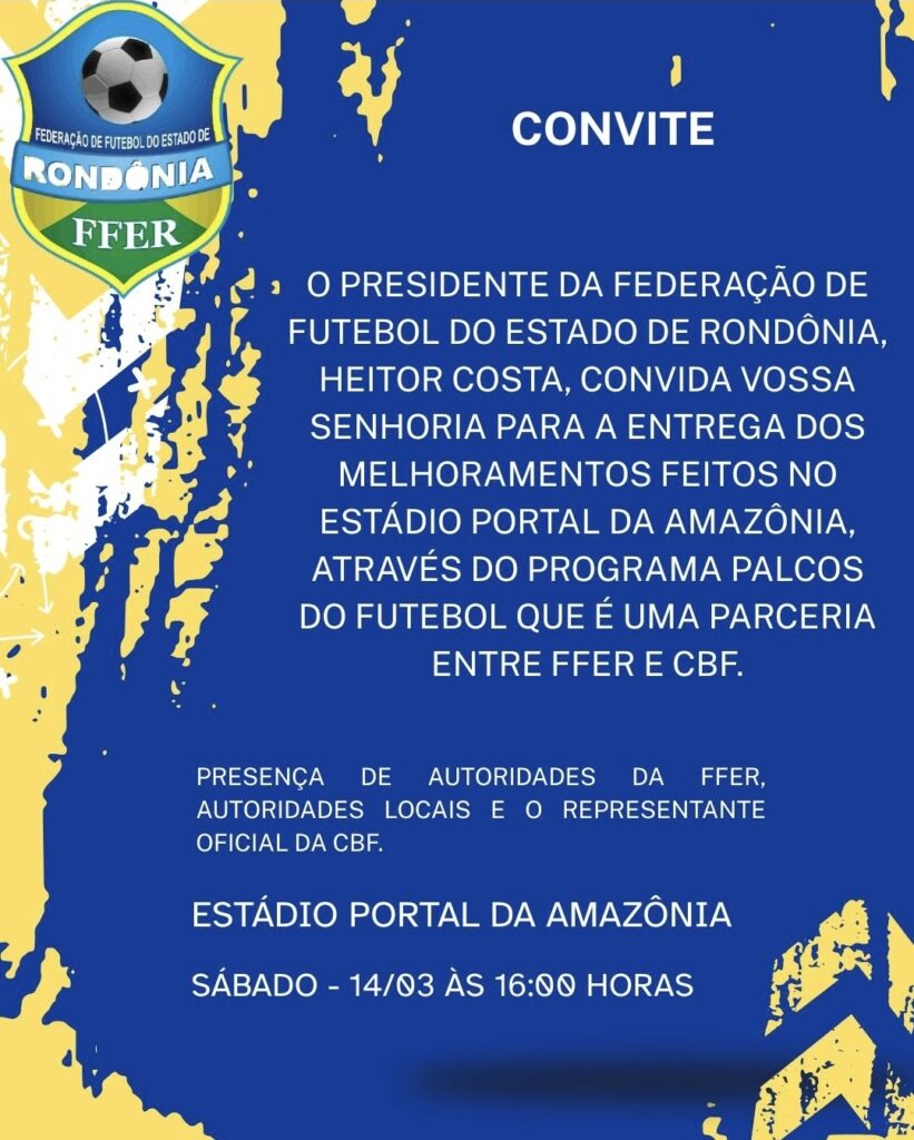 De acordo com o convite divulgado pela entidade esportiva, o evento marca a entrega dos melhoramentos realizados na estrutura do Estádio Portal da Amazônia, um dos principais espaços esportivos da região do Cone Sul de Rondônia.