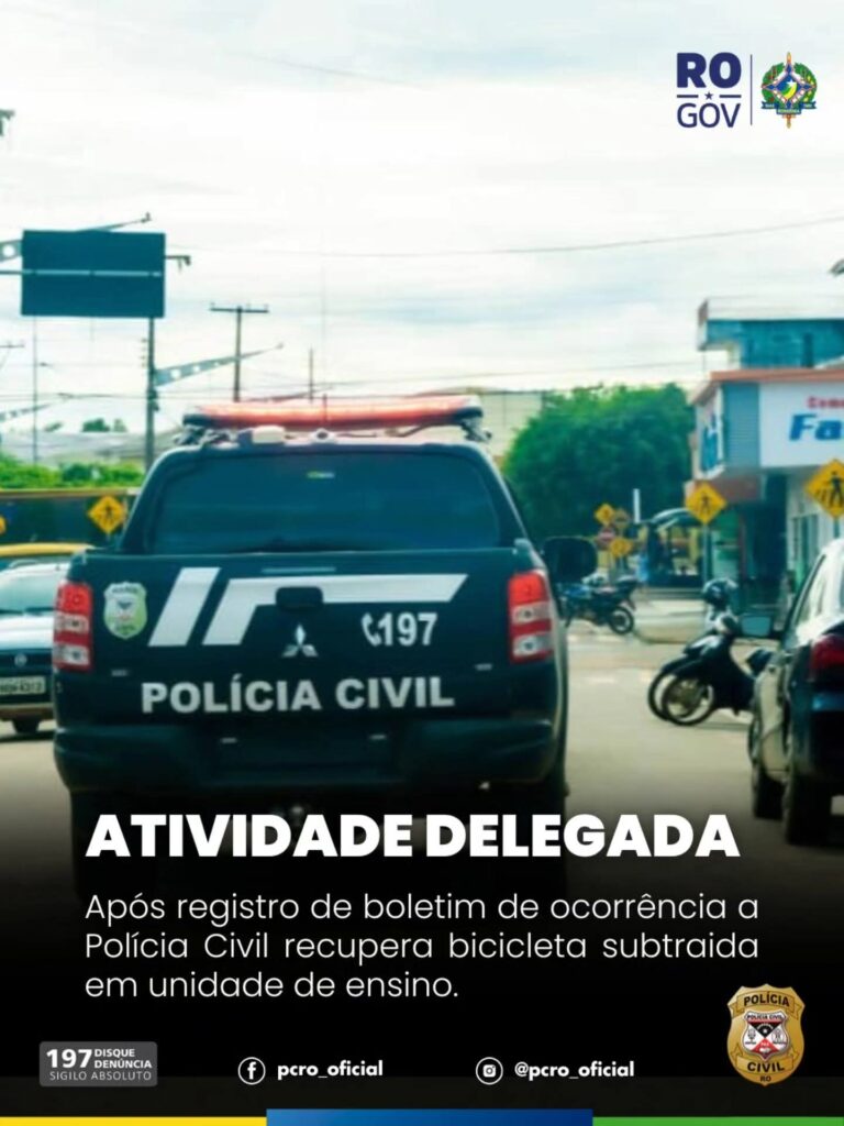 A Polícia Civil do Estado de Rondônia esclareceu, no âmbito da Atividade Delegada, um furto de bicicleta ocorrido na zona leste de Porto Velho. A rápida atuação das equipes permitiu a recuperação do bem e a identificação do autor do delito.