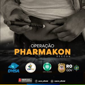 A Polícia Civil de Rondônia, por meio da Delegacia Especializada em Crimes Contra o Consumidor (DECCON), deflagrou em Porto Velho, nesta quinta-feira (13/11), a Operação PHARMAKON, com o objetivo de combater a prescrição e comercialização ilegal de medicamentos controlados e de alta complexidade, usados em protocolos estéticos e de emagrecimento sem respaldo médico. A ação contou com apoio do CREMERO, CRF e da Vigilância Sanitária municipal.