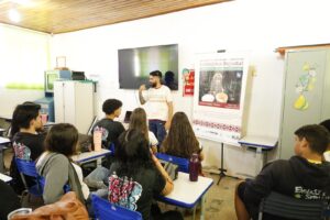 O curta-metragem documental “Saberes Nambiquaras: Tradição Cultural na Produção da Chicha e Beiju” foi exibido gratuitamente em escolas de Vilhena (RO) e na Comunidade Quilombola de Santa Cruz, em Pimenteiras do Oeste (RO), promovendo o acesso à cultura e a valorização dos saberes tradicionais dos povos indígenas da região.