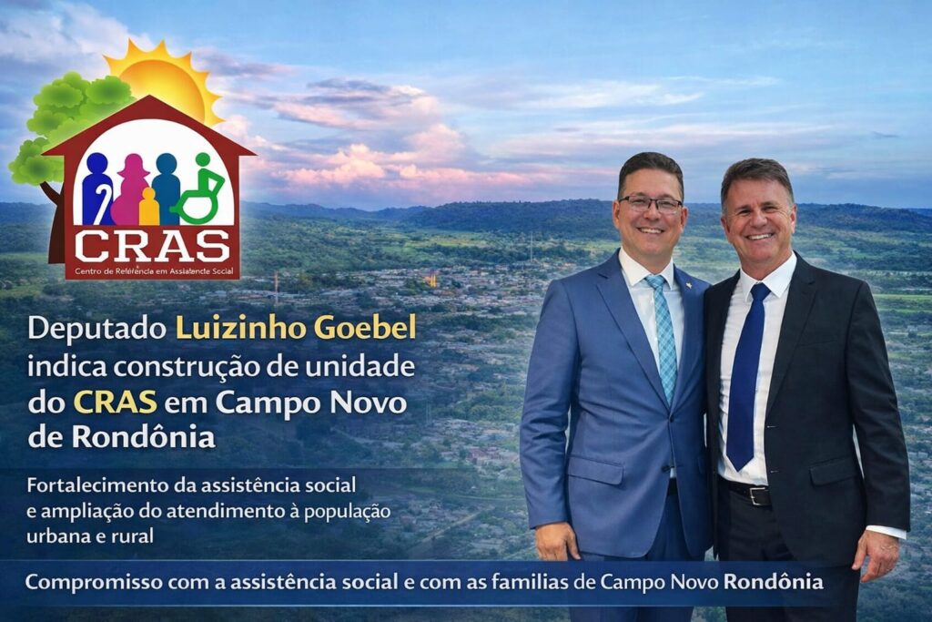 O deputado estadual Luizinho Goebel apresentou indicação ao Poder Executivo de Rondônia, com extensão à Secretaria de Estado de Assistência e do Desenvolvimento Social (SEAS), solicitando a construção de uma unidade própria do Centro de Referência de Assistência Social (CRAS) no município de Campo Novo de Rondônia.