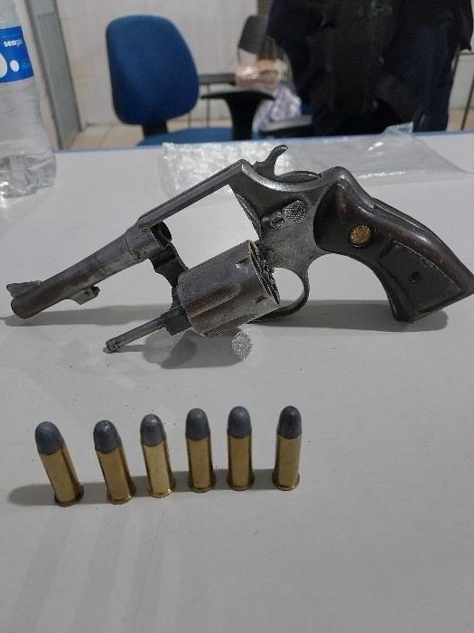 Na varredura do local, os policiais encontraram o revólver da marca Taurus com seis munições, algumas delas picotadas. Já no interior do veículo, foram localizados aproximadamente 68 tabletes de substância análoga à maconha, além de porções de crack, haxixe e cocaína, todas embaladas de forma típica para comercialização.