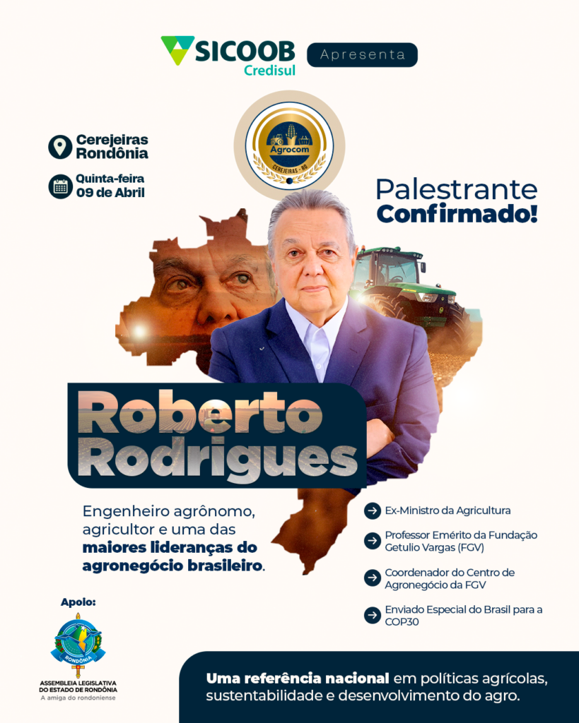 Roberto Rodrigues (09/04): Ex-ministro da Agricultura e coordenador do Centro de Agronegócio da FGV. Ele abordará políticas agrícolas e o papel do Brasil como líder global na produção de alimentos.
