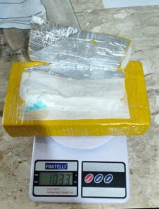 Ao perceber a aproximação da viatura policial, o suspeito dispensou o objeto e fugiu em uma canoa, atravessando o rio Mamoré em direção ao território boliviano. A guarnição realizou a verificação do material abandonado e constatou que se tratava de substância entorpecente análoga à cocaína, totalizando cerca de 1.033 gramas.