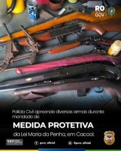 A Polícia Civil de Rondônia, por meio da Delegacia Especializada no Atendimento à Mulher (DEAM) de Cacoal, com apoio da 1ª Delegacia de Polícia de Cacoal e do Núcleo de Inteligência (NI), cumpriu mandado de busca e apreensão na residência de E.F.S., investigado por violência doméstica.