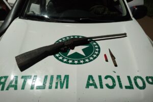 O homem recebeu voz de prisão pelo crime de porte ilegal de arma de fogo e foi encaminhado à Delegacia de Polícia Civil de Guajará-Mirim, junto com os objetos apreendidos.