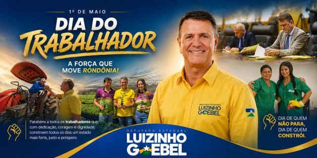 No Dia Internacional do Trabalho, celebrado nesta sexta-feira, o deputado estadual Luizinho Goebel manifestou seu reconhecimento e gratidão a todos os homens e mulheres que, com dedicação e suor, impulsionam a economia e o progresso do estado de Rondônia.