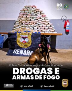 Na tarde desta quinta-feira (30), a Polícia Civil do Estado de Rondônia, por meio do Departamento de Narcóticos (DENARC), realizou uma ação de combate ao tráfico de drogas que resultou na apreensão de aproximadamente 140 quilos de skunk e 15,5 quilos de cocaína, além de duas pistolas calibre 9mm e dois revólveres calibre .38.