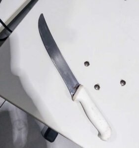 Segundo a mulher, o ex-companheiro desferiu golpes de faca na porta do imóvel e tentou arrombá-la. Ao perceber a presença dos guardas, o agressor arremessou a faca para o interior da casa e passou a xingar e desacatar a guarnição, mesmo após receber ordem de parada.